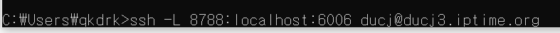 ssh -L <내 로컬컴퓨터에서 접속할 port>:<매칭할호스트:포트> <계정명>@<ssh 호스트>