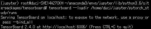 그런 후 tensorboard --logder <run까지만> 입력을 하게되면 실행되고 port의 default 값은 6006이다.