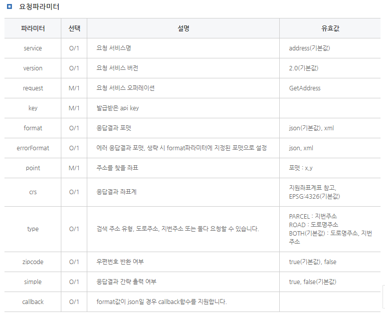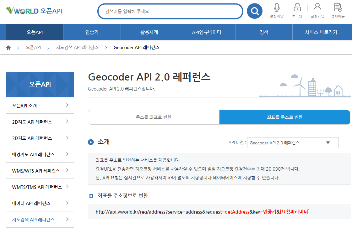 [공간정보오픈플렛폼]위경도 변환, 주소 변환