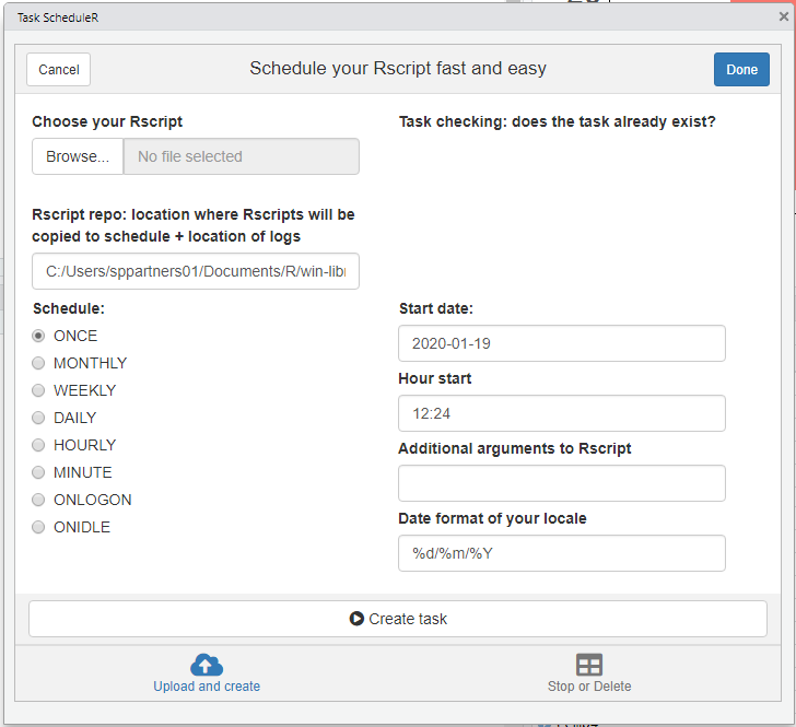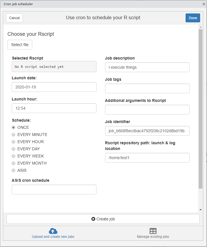 Rscript repo : location where Rscripts will be copied to schedule + location of logs 를 통해 스케줄 및 로그파일의 저장경로를 성정 가능하다.