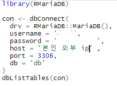 [R][SQL] RMariaDB 외부 접속 설정하기