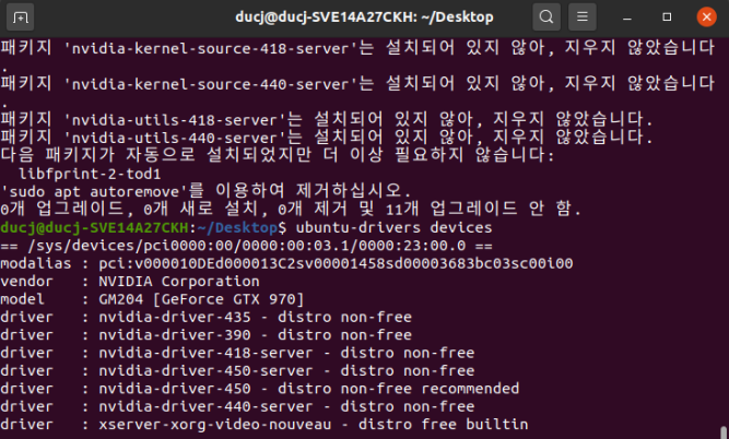 아래 명령어를 통해 설치 가능한 드라이버 목록을 확인 할 수 있다.